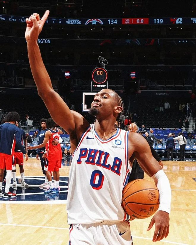 NBA官方社交媒体发布了一张泰瑞斯·马克西举起手指做出“第一个”手势的庆祝照片,并附有简短而有力的标题:“76人队是东部联盟第一。”这张照片的背后是费城76人队4-0的完美赛季开局以及这位25岁控球后卫的进化故事。他在四场比赛中场均得到37.5分、3.8个篮板和8.3次助攻。这是马克西的成绩单。本赛季首场对阵凯尔特人的比赛中,他就得到40分和6次助攻,三分球9投7中。对阵黄蜂队,他拿下28分、6个篮板和9次助攻。对阵魔术队他拿下43分、4个篮板和8次助攻。在连续对阵奇才队的比赛中,他得到39分和10次助攻,四场比赛总计150分,成为NBA历史上第四位在赛季前四场比赛中得分至少150分的控球后卫。此前只有乔丹、杰里·韦斯特和威斯布鲁克完成过这一壮举。 H然而,与游戏过程相比,数据远没有那么令人印象深刻。对阵奇才队,76人队落后多达19分8分,看起来整个第四节都是马克西的表演。这位年轻人在第四节还剩5分钟时开始了表演,他的球队仍然落后13分。犯规后两罚全中,助攻乌布雷中投,自己连续罚球拿下七分,然后准确喂格莱姆斯连续两记三分球。第四节他得到15分和3次助攻,帮助球队首节以32-16获胜,将比赛拖入加时赛。马克西的统治力在加时赛中达到顶峰,他一人拿下9分,比奇才队加时赛的总分还多一分。最终,76人队以139-134出人意料地翻盘,这是赛季开始以来他们第三次在第四节落后两位数。从2020年第21顺位到作为目前东部统治地位的核心,马克西的成长轨迹是教科书式的。新秀赛季,他还是一名替补后卫。在哈登身边学习了一个半赛季后,他从场均17.5分和4.3次助攻稳步提升,成为上赛季的全明星和进步最快球员。如今哈登走了,马克西的能量彻底释放,彻底变身为持球核心。他场均8.3次助攻排名联盟第八,场均37.5分排名联盟第二,仅次于东契奇。进攻和传球的结合开始形成。更令人印象深刻的是76人队在阵容不齐的情况下的反弹能力。在恩比德因伤无法连续打比赛、乔治尚未回归的情况下,马克西带领球队在四场艰苦的比赛中取得了胜利。现在,费城终于找到了后“信任过程”时代的真正答案。 25岁的超级点后卫正在带领他的球队夺得东部冠军。联盟似乎正在见证一位新超级巨星的诞生,这一帧中官方的“第一”手势在互联网上传播开来。当记者问马克西是否有机会再次获得最高奖项时,或许真正的问题应该是:这个刚刚向76人做出“第一次”姿态的年轻人会走多远?